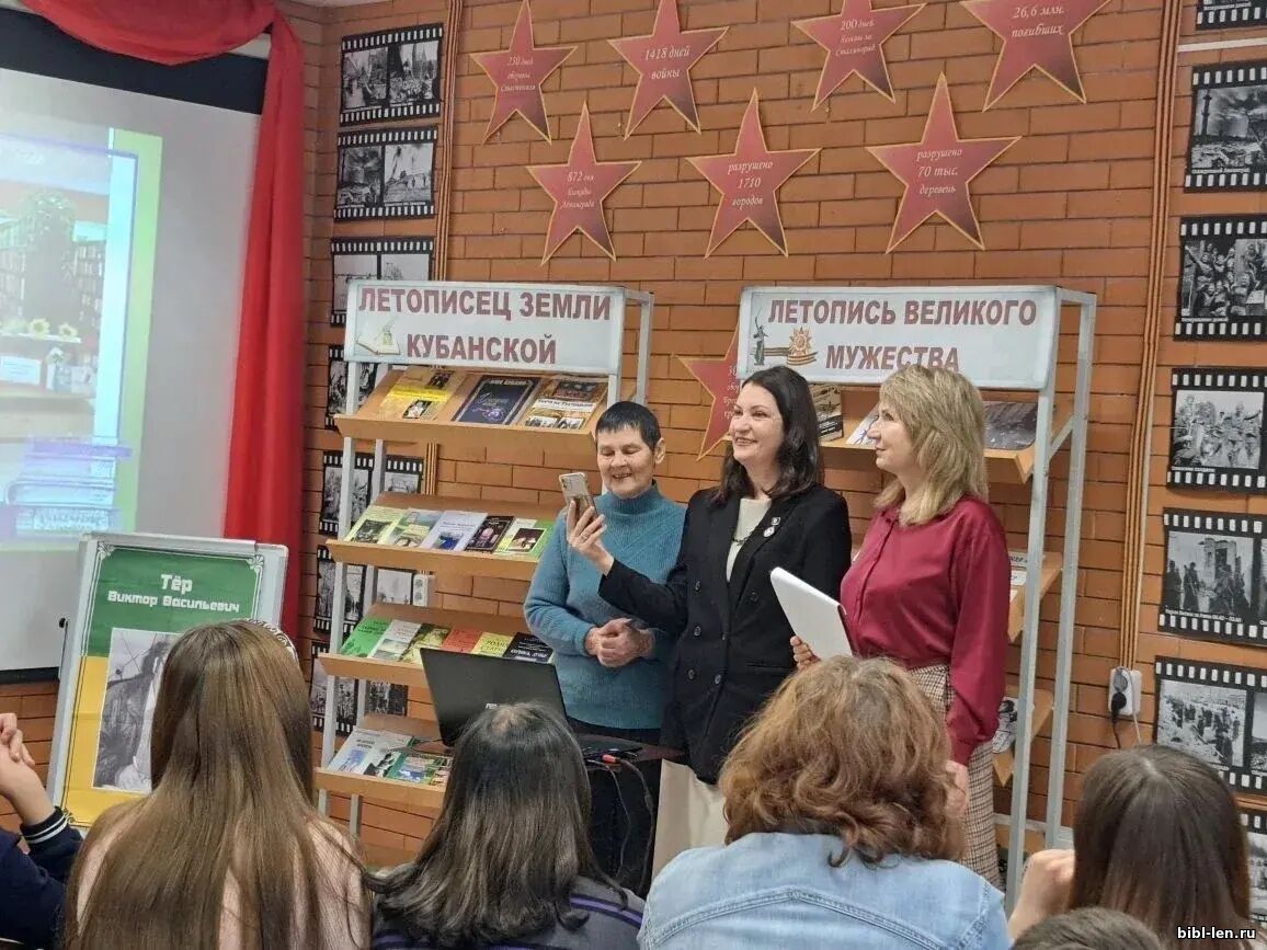 Елена Михайловна Заливацкая поделилась тёплыми воспоминаниями о совместной работе: о доброте, отзывчивости и искренней заботе Виктора Васильевича о людях и своей станице. Студенты и поклонники творчества представили новую книгу автора, прочитав яркие отрывки, которые сразу заинтересовали аудиторию. В подарок библиотеке Виктор Васильевич передал своё новое издание «Рюкзак Федосеева». Дина Васильевна Савченко вспомнила совместные встречи с молодёжью, подчеркивая, как Виктор Васильевич умеет зажечь в юных читателях любовь к истории.